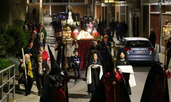 Les imatges del “Cristo Encamado” i de “La Dolorosa” recorren els carrers de Mequinensa a la Processó del “Sant Enterrament”
