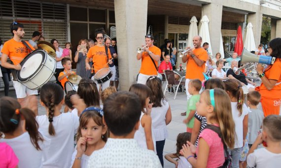 El tiempo obligó a trasladar la remodelada Gala de Proclamación de la plaza del Ayuntamiento a la Sala Goya en tiempo récord. La lluvia, que respetó el lanzamiento del chupinazo a mediodía y las actividades de tarde, quiso convertirse por la noche en protagonista de la primera jornada de la Fiestas de “La Santa” 2019
