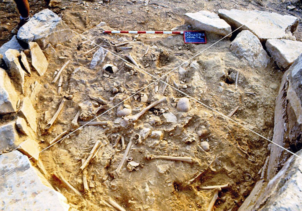 El punto de partida de este estudio, liderado por Marina Bretos, investigadora predocotral adscrita al Instituto Universitario de Investigación en Ciencias Ambientales de Aragón (IUCA – Universidad de Zaragoza), Jesús Picazo (IUCA – Universidad de Zaragoza) y Vanessa Villalba-Mouco, investigadora Ramón y Cajal del Institut de Biología Evolutiva (IBE-CSIC), junto a un equipo internacional, fue el carácter singular de este yacimiento: una necrópolis donde convivieron a la vez dos prácticas rituales distintas, la inhumación y la incineración. El uso de ésta última ha sido asociado en la literatura arqueológica a la dispersión de la Cultura de los Campos de Urnas, un fenómeno muy controvertido por su causalidad: ¿fue una dispersión cultural asociada a una dispersión poblacional? Al tratarse Los Castellets de un yacimiento donde, a priori, ambas prácticas convivieron (hecho constatado únicamente en un par de yacimientos europeos), se convierte en una fuente de información única para estudiar este fenómeno. Las técnicas de recuperación de ADN antiguo todavía no han superado la barrera que supone las altas temperaturas para la conservación del material genético, por lo que sólo se han estudiado individuos inhumados. El objetivo principal del estudio fue el Túmulo 2, el único enterramiento colectivo de gran entidad (con más de 30 individuos), que combina rasgos tradicionales —como la colectividad y ciertas reminiscencias megalíticas— con elementos novedosos —como parte del ajuar funerario formado por cerámicas características de la cultura de los Campos de Urnas.