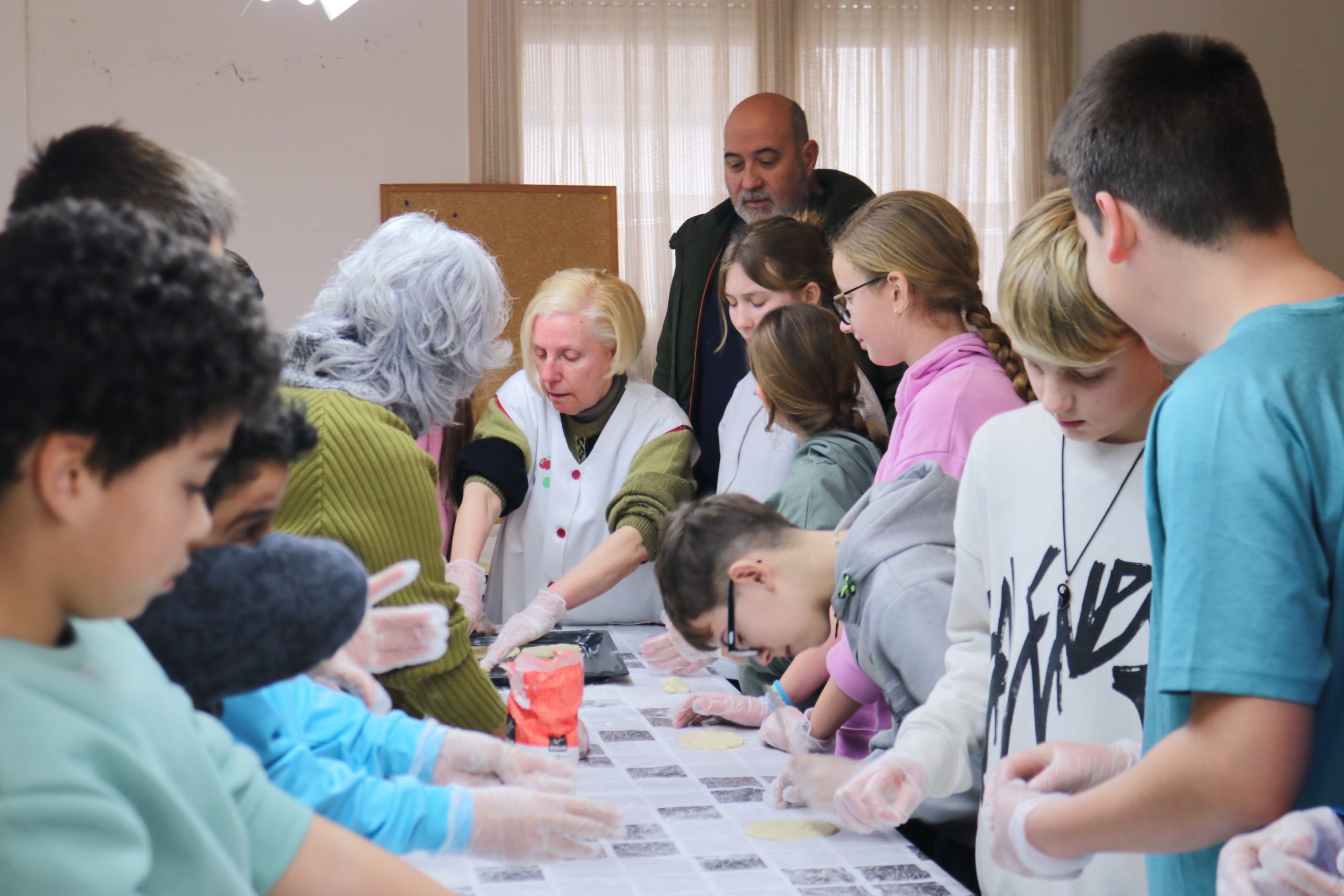 Publicada a las 2560 × 1707 en Las Comisiones de San Blas y Santa Águeda transmiten a los escolares la elaboración de las “coques” como elemento ligado a la Fiestas de Invierno de Mequinenza